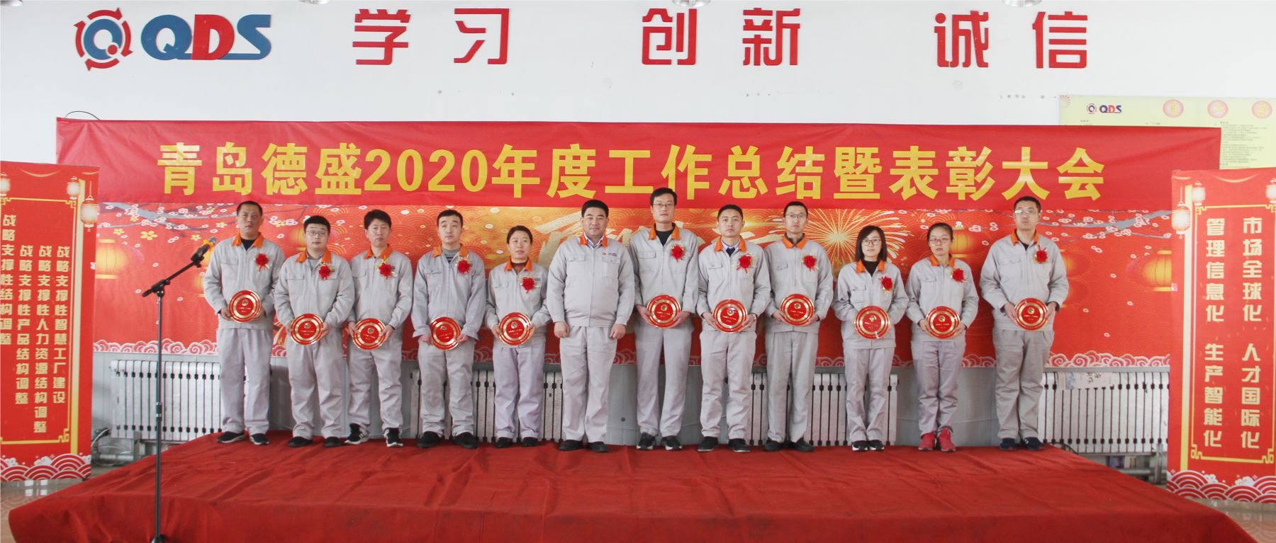 大會舉行了隆重的頒獎儀式,為任興鵬等56名“先進生產者”、張曉雷等26名“先進工作者”、李超等6名“優秀管理者”、八車間等5個“優秀團隊”頒發榮譽證書;為入職滿十年的王濤遠等11名員工頒發銅牌、為入職滿三十年的李衛東等3名員工頒發金牌。榮獲獎牌員工代表王濤遠、優秀員工代表王偉分別發言,感謝公司的培養、領導的信任和同事們的支持,他們表示2021年一定立足本職崗位,不斷創新工作思路,努力提高工作能力和水平,力求把各項工作做得更扎實、更到位,為公司的持續健康發展做出新的貢獻!